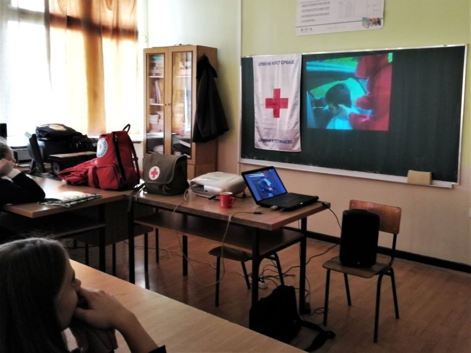Crveni krst Valjevo je u ponedeljak, 02. decembra na poziv „Prve osnovne škole“ iz Valjeva, realizovao interaktivne radionice, predavanja i demonstraciju veština iz PRVE POMOĆI namenjenu učenicima osnovnoškolskog uzrasta, za predstavnike đačkog parlamenta i grupu učenika sedmog razreda (predstavnici svih odljenja) prilagođenu pomenutom uzrastu u prostorijama škole, na kojima je učestvovalo 43 učenika i 2 profesora. Predavanje je izvedeno uz prikazivanje video prezentacije, edukativnog filma kao i demonstraciju veština od demonstratora prve pomoći Crvenog krsta Valjevno, a učenici su kroz interaktivan rad praktično uvežbavali aktivnosti na zadate teme kao što su: kako zaustaviti krvarenje, kako postupati u slučaju požara na uređajima u stanu, i drugo, a sve u okviru doktrine iz prve pomoći. Predavanje je realizovao, demonstrator Crvenog krsta Valjevo, saradnik za podmladak i omladinu Aleksandarom Tomić. Ovoj informativnoj radionici prisustvovala su 43 učenika i dva profesora.