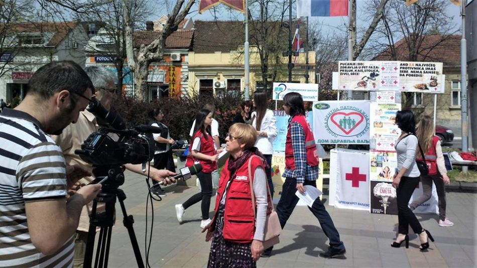 Crveni krst Valjevo je i ove godine aktivno obeležio Svetski dan zdravlja – 7. april. čiju smo aktivnost zbog Uskršnjih praznika realizovali u sredu 11. aprila, kao centralnu uličnu manifestaciju na Gradskom trgu. Uzimajući u obzir, da je javno zdravlje i zdravlje svakog pojedinca tema koja nema ni vreme, ni rok, ovaj izuzetak u pomeranju datuma, suštinski i tematski, nije odstupio od ideje, da se usluge od značaja za opšte zdravlje stanovništva učine dostupnijim, što je bio i ovogodišnji slogan Svetskog dana zdravlja „Zdravlje za sve“. Događaj je izazvao, više nego zadovoljavajuću medijsku pozornost pa su ga ispratile tri televizije, regionalana „VTV“ i dve lokalne „TV Marsh“ i „Televizija Valjevo Plus“. Aktivnost je pored učenika medicinske škole „dr Miša Pantić“ realizovalo i 14 volontera Crvenog krsta Valjevo i četiri stručna saradnika.