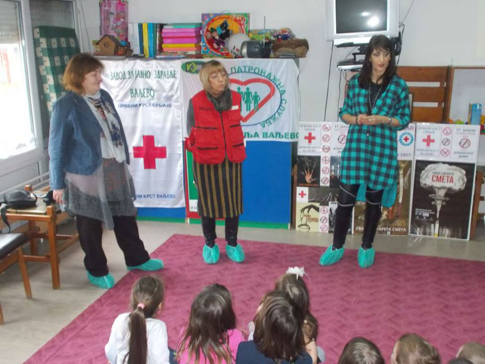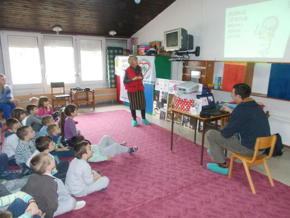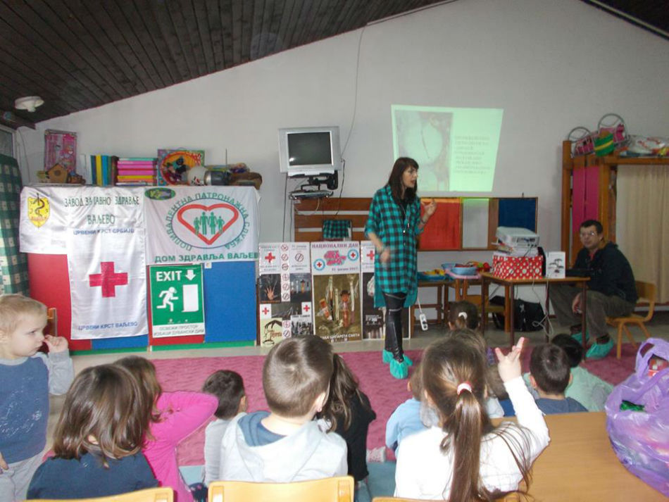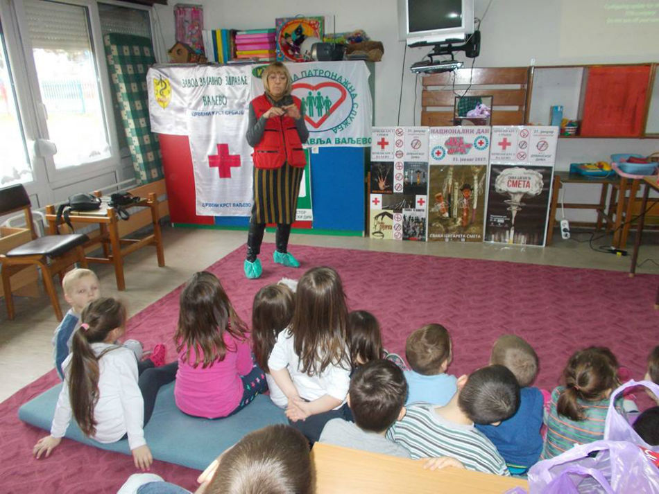 Crveni krst Valjevo je i za predškolce u vrtiću „Kolibri“ održao predavanje i kreativnu radionicu u sklopu prevencije „Bolesti zavisnosti“ na temu „Odrasli puše i mene guše“. Prevencija kao i edukativni program svakako doprinose da se deca u najmlađem uzrastu upoznaju sa ovim porokom.