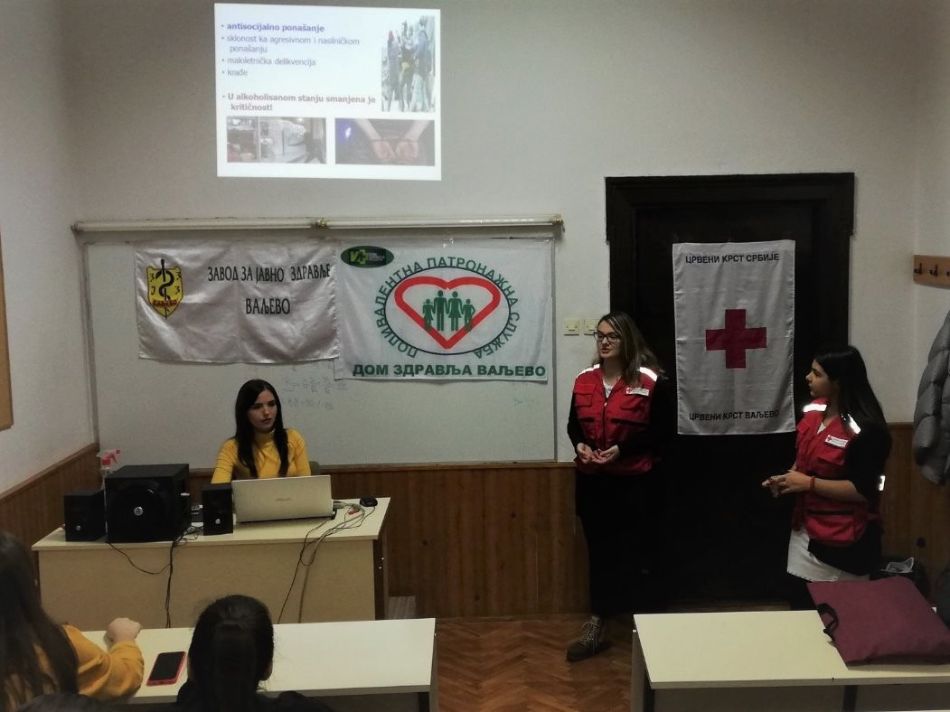 Ovo su bila i prva predavanja za naših 6 novoosposobljenih vršnjačkih edukatora iz programa „Alkoholizam mladih“ Mine Lazić, Teodore Čikarić, Ksenije Njegomirović, Jovane Tripunovski, Mateje Rosića i Jovana Stojakovića, i prilika da na delu primene stečena znanja stečena na sedmodnevnoj obuci. Predavanja koja su realizovana u medijateci Valjevske gimanazije su protekla u dobroj interakciji prisutnih, sa puno novih činjenica sa kojima su se po sopstvenom priznanju po prvi put upoznali baš od strane edukatora. Sve ovo su zajedno osmislili u okviru partnerske saradnje, stručni saradnici Crvenog krsta Valjevo, Zavoda za javno zdravlje Valjevo, Službe polivalentne patronaže i Savetovalištva za mlade Doma zdravlja Valjevo.