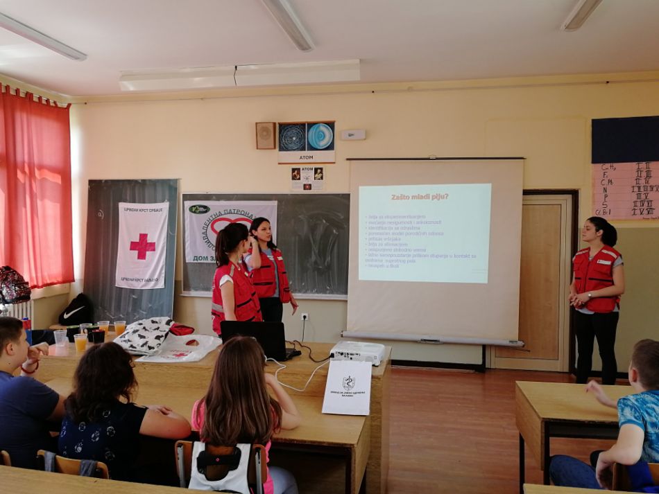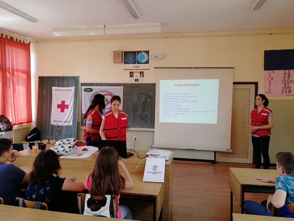 Mladi - mladima. Vršnjački edukatori Crvenog krsta Valjevo, učenici srednjih škola koji su prošli višednevnu stručnu obuku, realizovali su nova predavanja i radionice za učenike sedmog razreda u Prvoj osnovnoj školi u oblasti prevencije bolesti zavisnosti, ovoga puta na temu „Alkoholizam kod mladih“. Rad je timskog karaktera u kojem učestvuju po tri vršnjačka edukatora, koristeći adekvatno pripremljene prezentacija koje imaju za cilj da mladima približe sveobuhvatnu problematiku potencijalne zavisnosti od alkoholizma na njima prihvatljiv i razumljiv način.