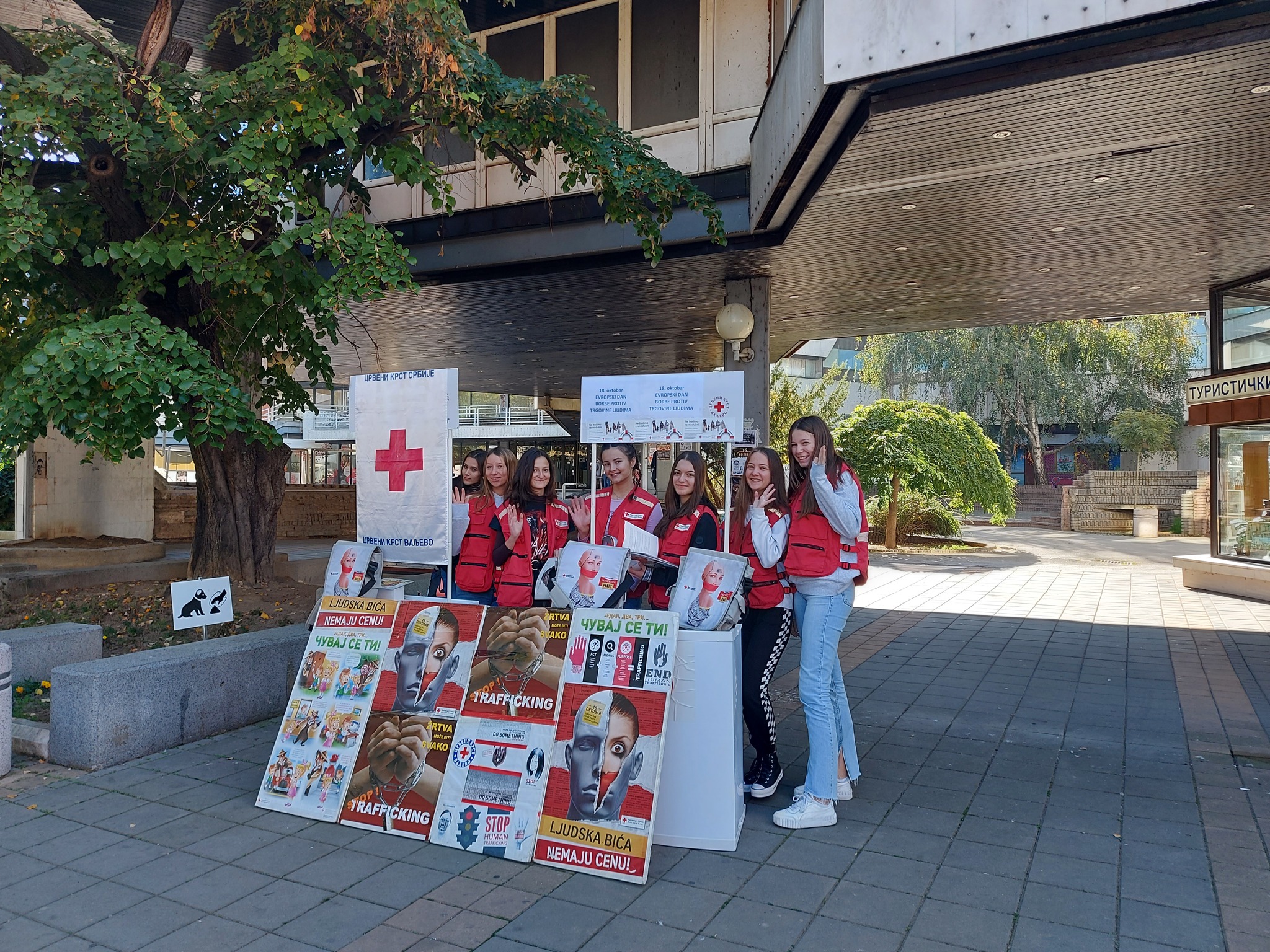 Crveni krst Valjevo je u utorak na gradskom trgu od 11 časova obeležio 18. oktobar – Evropski dan borbe protiv trgovine ljudima. Ovaj datum u kalendar važnih datuma, uvrstila je Evropska komisija 2007. godine, od kada se i obeležava u svim zemljama članicama. Crveni krst Srbije od 2005. godine u kontinuitetu sprovodi aktivnosti na prevenciji trgovine ljudima. Metoda koja je odabrana za ovu priliku je javna prezentacija programa, prevashodno učenicima druge godine medicinske škole, konkretno jedne odeljnske zajednice. Na takav način uz prolaznike na Gradskom trgu, bili smo u prilici da informišemo i motivišemo mlade ljude, da postanu vršnjački edukatori i uključe se u program.