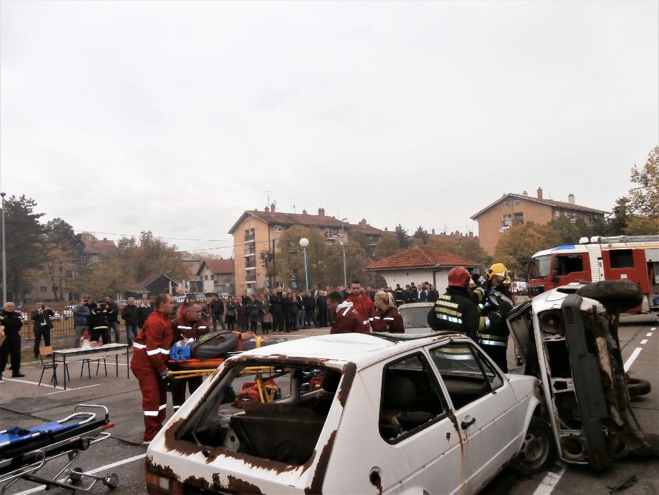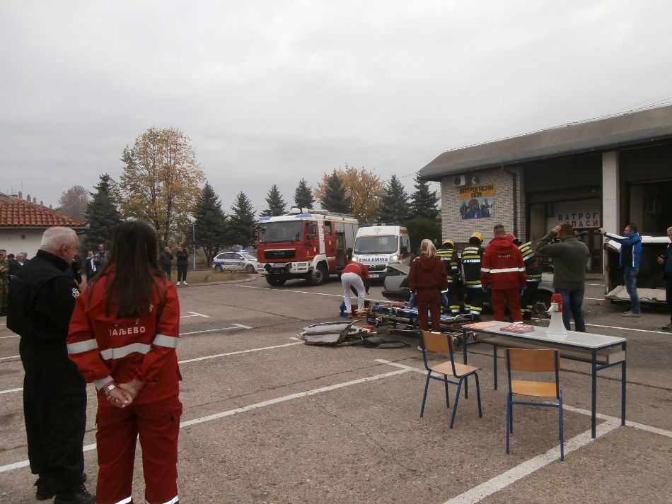 Crveni krst Valjevo je u sredu, 24. oktobra, na poziv Odeljenja za vanredne situacije MUP-a u Valjevu, učestvovao u zajedničkoj pokaznoj vežbi ovlašćenih i osposobljenih subjekata za delovanje u vanrednim situacijama, kroz realistički prikaz povreda i stanja sa svojim demonstratorima i glumcima koje su za javnost verodostojno i profesionalno sproveli obučeni volonteri Crvenog krsta Valjevo na prostoru ispred Vatrogasnog doma u Valjevu. Na vežbi je izvedena simulacija saobraćajne nezgode sa više učesnika, sa slupanim i prevrnutim automobilima u kojima su teško povređeni vozači i drugi učesnici u saobraćaju a obučeni volonteri iz prve pomoći Crvenog krsta Valjevo su verno prikazali i iscenirali povrede koje su organizatori precizno planirali i definisali. U simulaciji su zajeno učestvovali Vatrogasno-spasilački bataljon u Valjevu, Saobraćajna policija PU Valjevo, Hitna pomoć Doma zdravlja Valjevo, Medicinska škola Valjevo i Crveni krst Valjevo. Cilj ove javno-pokazne vežbe je institucionalno povezivanje i uvežbavanje, kako bi se prisutnima što realnije demonstrirali postupci kao i posledice saobraćajnih nesreća a samim tim i skrenula pažnja na mere koje se moraju zajednički preduzeti kako bi se one sprečile.