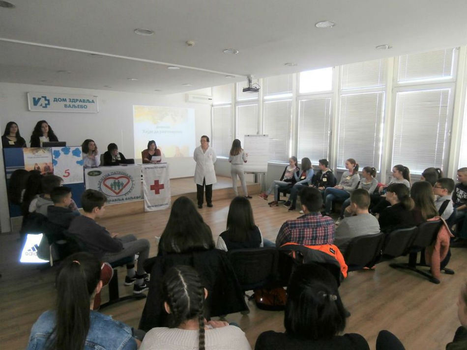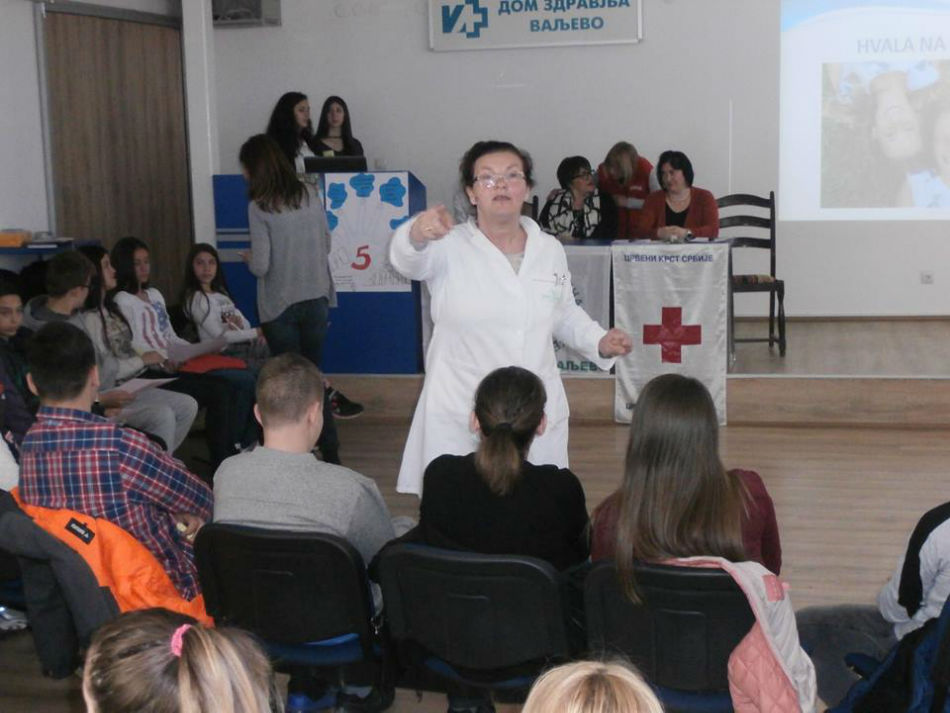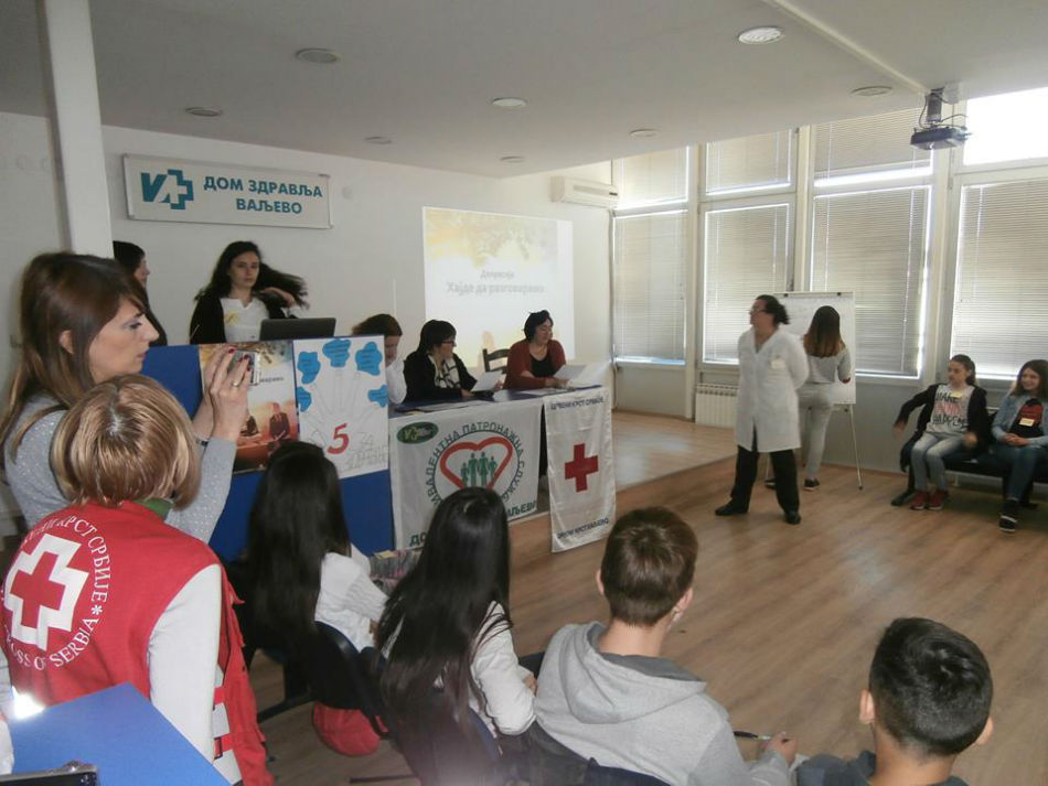 Crveni krst Valjevo aktivno učestvuje u realizaciji radionica za vršnjačke edukatore na temu „Depresija, hajde da razgovaramo“ koje se održavaju u Edukativnom centru Doma zdravlja Valjevo u periodu od 24. do 28. aprila, nastavljajući tematsku podršku ovogodišnjem obeležavanju Svetskog dana zdravlja. Radionice su namenjene učenicima sedmog razreda gradskih osnovnih škola a kao podrška mlađim učesnicima radionica, tu su bili i učenici trećeg razreda Medicinske škole u Valjevu. Sa učenicima su razgovarali psiholog, pedijatar, patronažna sestra, profesor iz zdravstvene nege Medicinske škole, predstavnici Zavoda za javno zdravlje i zdravstvena saradnica Crvenog krsta Valjevo.27.04.2017.