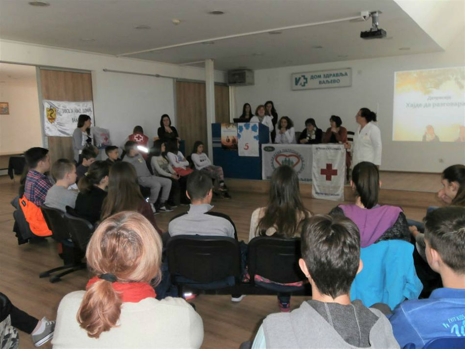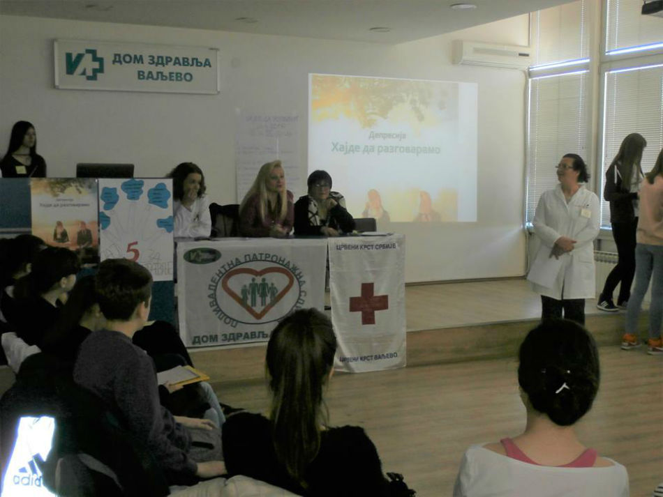 Crveni krst Valjevo aktivno učestvuje u realizaciji radionica za vršnjačke edukatore na temu „Depresija, hajde da razgovaramo“ koje se održavaju u Edukativnom centru Doma zdravlja Valjevo u periodu od 24. do 28. aprila, nastavljajući tematsku podršku ovogodišnjem obeležavanju Svetskog dana zdravlja. Radionice su namenjene učenicima sedmog razreda gradskih osnovnih škola a kao podrška mlađim učesnicima radionica, tu su bili i učenici trećeg razreda Medicinske škole u Valjevu. Sa učenicima su razgovarali psiholog, pedijatar, patronažna sestra, profesor iz zdravstvene nege Medicinske škole, predstavnici Zavoda za javno zdravlje i zdravstvena saradnica Crvenog krsta Valjevo.