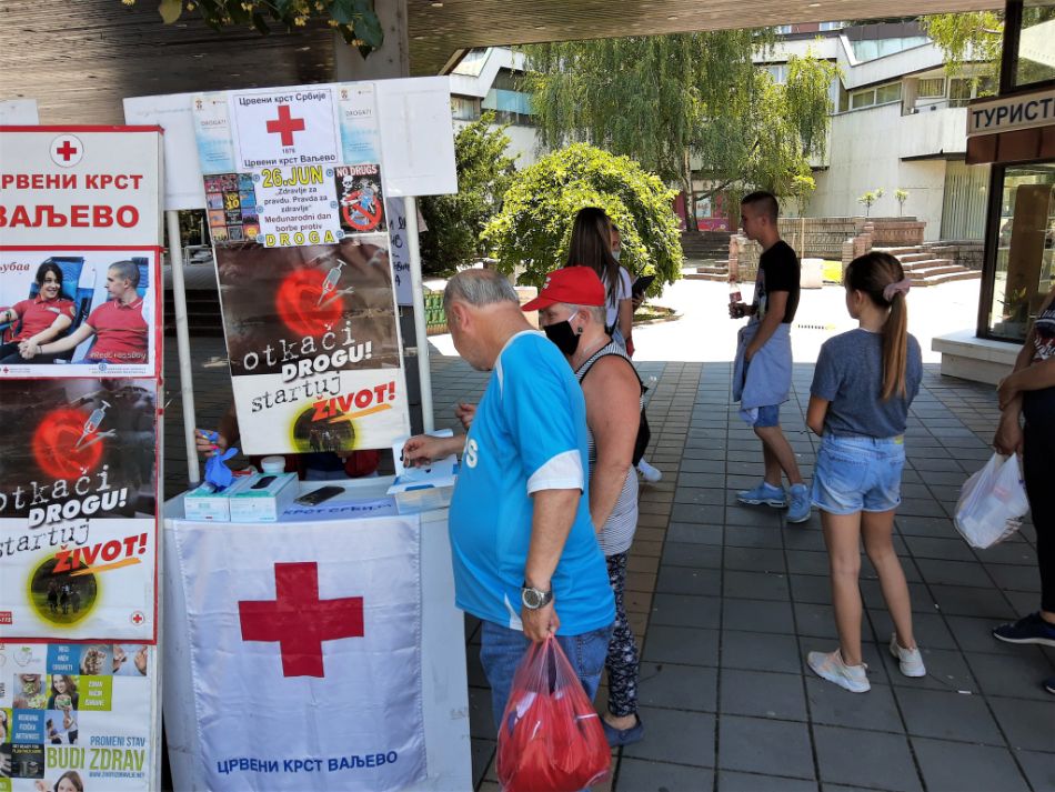 Crveni krst Valjevo je i ove godine, zajedno sa svojim volonterima a u okviru realizacije svojih preventivnih aktivnosti posvećenih mladima, aktivno obeležio Svetski dan borbe protiv zloupotrebe i nezakonite trgovine drogama, adekvatnom postavkom i anketiranjem posetilaca kroz interaktivan pristup, na centralnom gradskom trgu, pod sloganom „Više znanja – za zdravu negu“, uz prisustvo građana, javnosti i medija. Ovim aktivnostima Crveni krst Valjevo ima za cilj podizanje svesti o izazovima koje droga predstavlja za društvo i pokretanje svih, kako pojedinaca i porodice, tako i najšire zajednice, da se uključe u prevenciju zloupotreba droga.