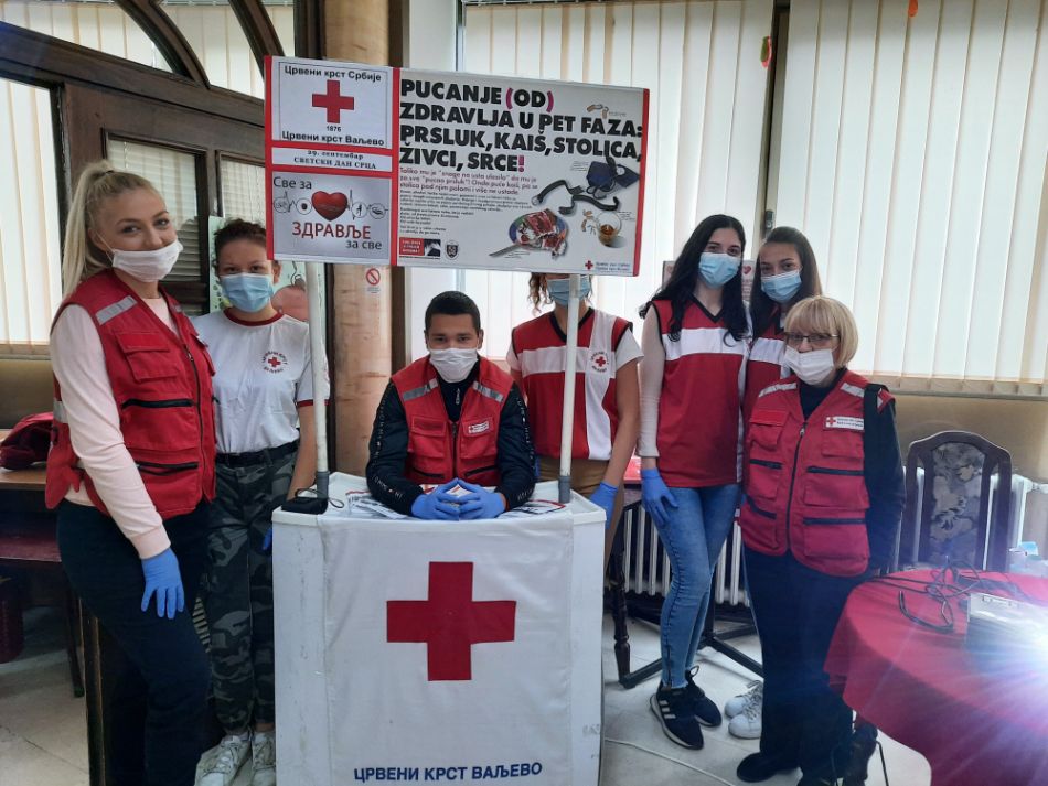 Crveni krst Valjevo je, u utorak 29. septembra, obeležio – Svetski dan srca zajedno sa svojim partnerima, saradnicima i volonterima, na sada već tradicionalan način, pod ovogodišnjim sloganom: „Svim srcem za zdravo srce“. Aktivnost je realizovana u prostorijama Doma penzionera Valjevo u saradnji sa Udruženjem penzionera i kolegama iz sektora za promociju zdravlja, Zavoda za javno zdravlje Valjevo i službom polivalentne patronaže Doma zdravlja Valjevo.