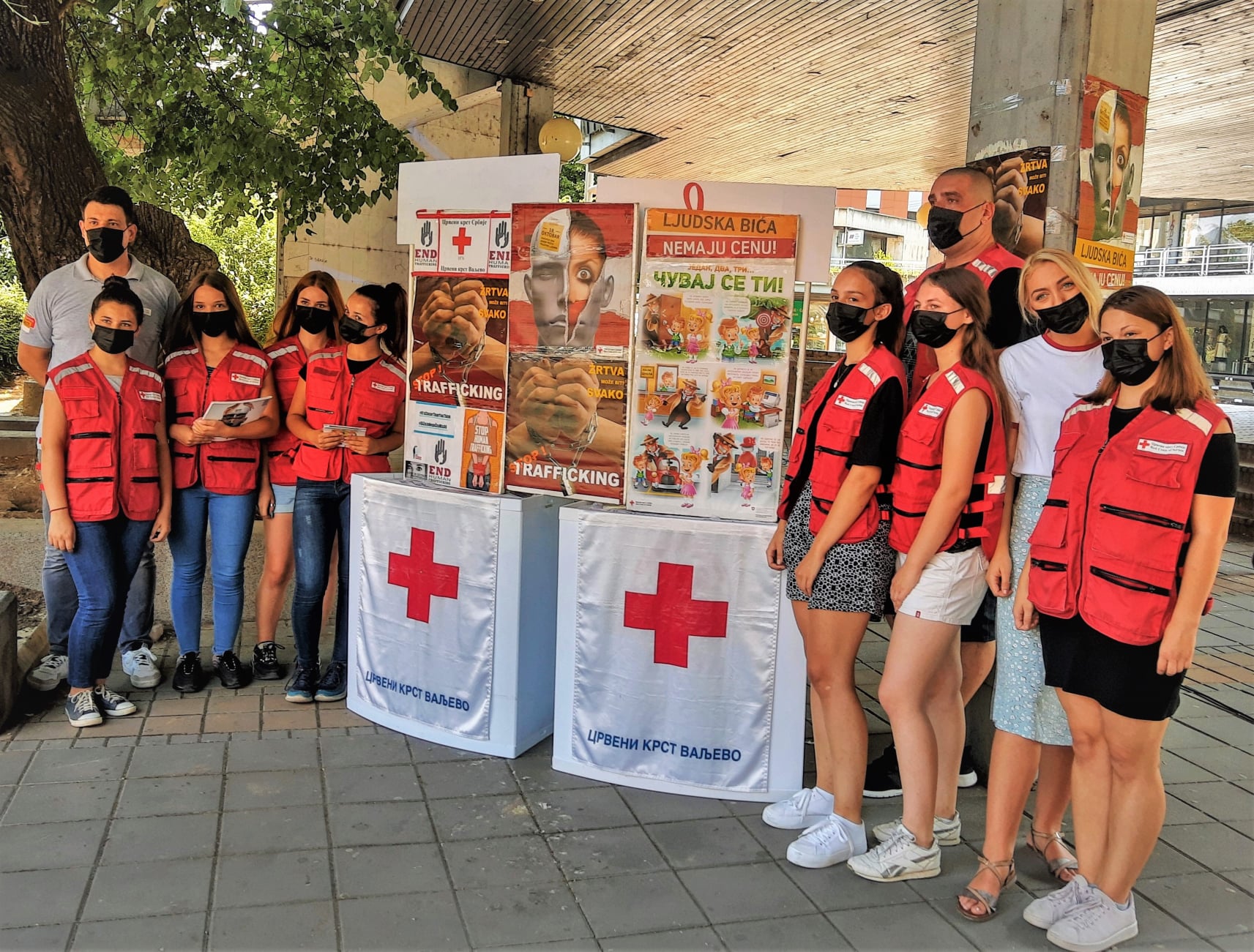 Crveni krst Valjevo je u petak 30. jula, aktivno obeležio Svetski dan borbe protiv trgovine ljudima realizacijom više aktivnosti na otvorenom prostoru, na centralnom Gradskom trgu u Valjevu, postavljanjem promotivnih štandova, podelom promotivnog i preventivnog materijala, edukativnim predavanjima na otvorenom za građane i angažovane volontere a realizatori su bili obučeni mladi edukatori – kandidati za trenere Crvenog krsta Valjevo uz korišćenje audio i video tehnike, uz prisustvo regionalnih i lokalnih medija na mestu događanja. 30.07.2021.